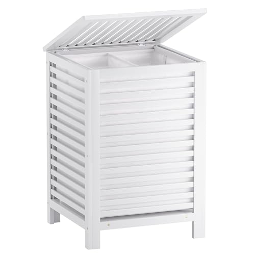 SMIBUY Double Laundry Hamper with Lid, 120L Bamboo Laundry Basket with Removable Liner Bag, 2-Section Clothes Divider Laundry Sorter for Laundry Room, Bathroom, Bedroom (White)