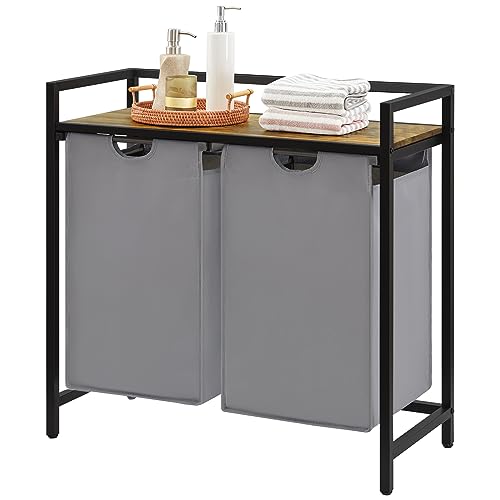 Lifewit Laundry Hamper 2 Sections, 95 L Laundry Basket with Shelf and Double Pull-Out Removable Bags, Laundry Sorter for Laundry Room Bedroom Bathroom Dorm, Grey