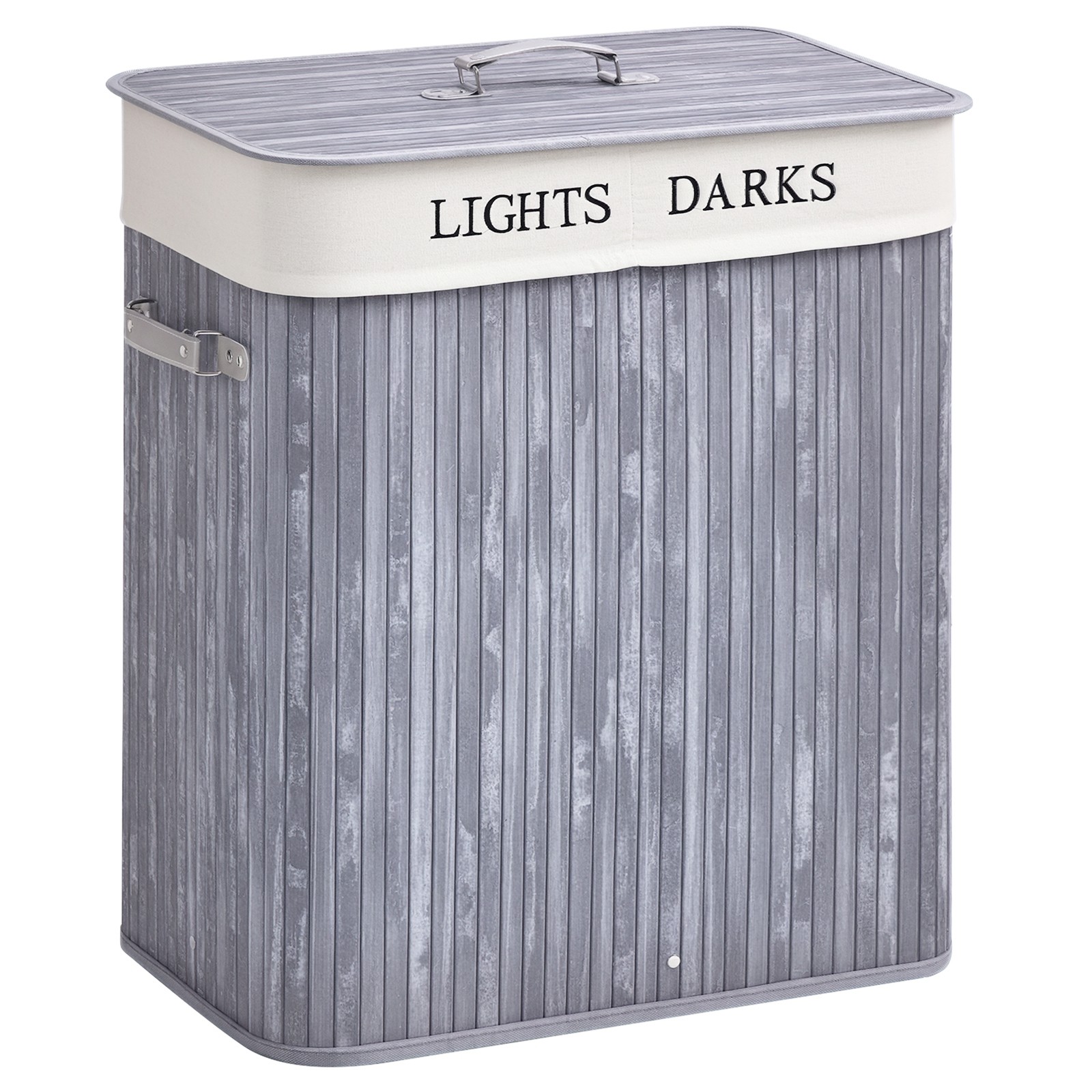 Grey Double Laundry Hamper Bin Large Clothes Removable Washing Basket With Lid