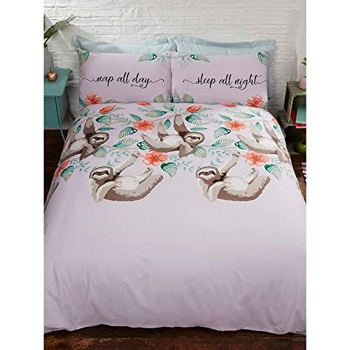 Rapport Home Sloths Duvet Cover Set for Kids & Teens | Soft Polycotton Bedding with Fun Animal Print | Reversible Double Size Quilt Cover & Pillowcases | Lilac