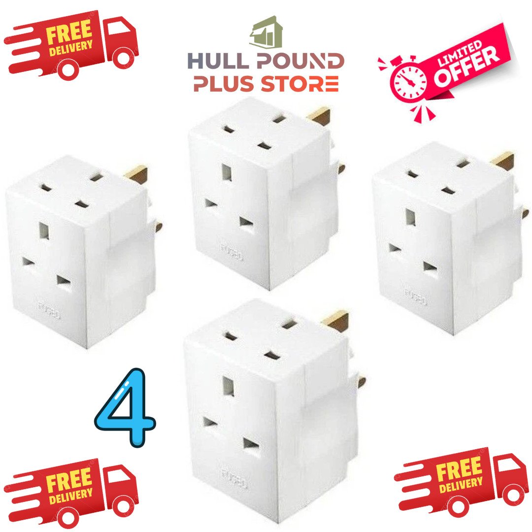 4x 2WAY ADAPTOR 3 PIN MAINS SOCKET 13 AMP DOUBLE HOUSEHOLD MULTI PLUG ADAPTER UK