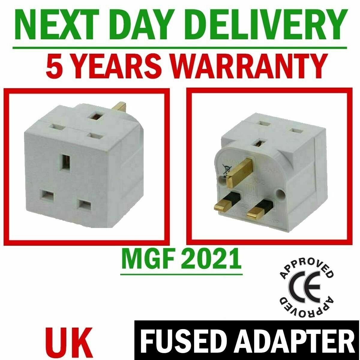 2 WAY ADAPTOR 3 PIN MAINS SOCKET 13 AMP DOUBLE HOUSEHOLD MULTI PLUG ADAPTER UK