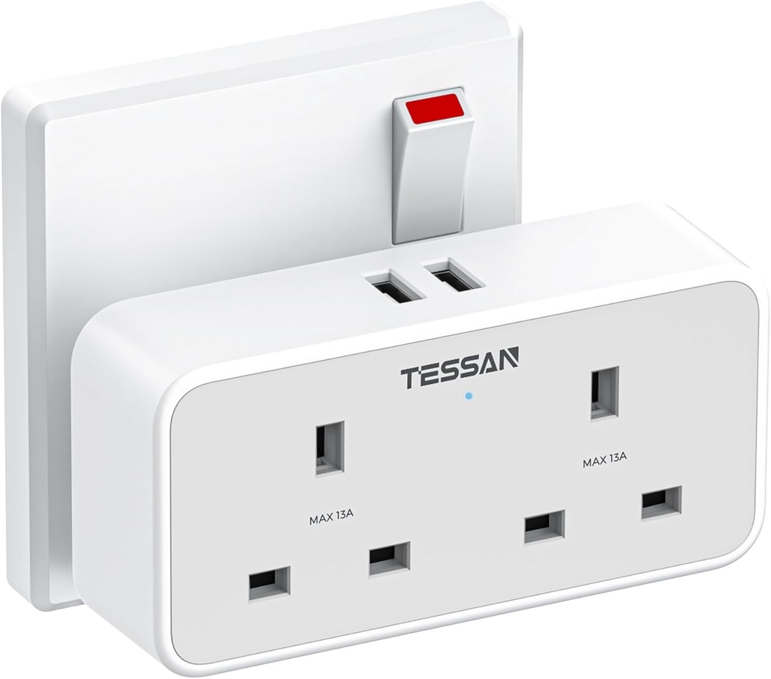 TESSAN Double Plug Adapter UK with 2 USB, 2 Way Multi Plugs Extension Socket, 13A UK Dual Surge Protected Wall Charger Power Adaptor for Home, Office, Kitchen, School Supplies