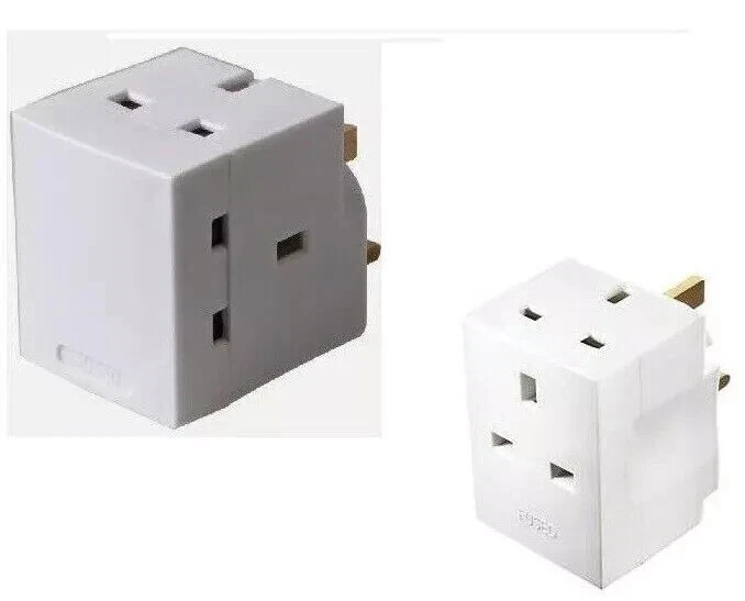 3 WAY ADAPTOR 3 PIN MAINS SOCKET 13 AMP DOUBLE HOUSEHOLD MULTI PLUG ADAPTER UK