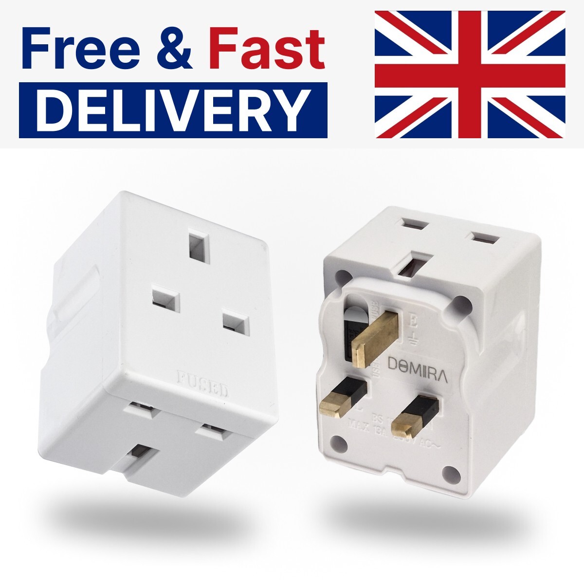 DOMIRA 3-Way 3-Pin Power Adapter Multi-Socket 13A Plug Double Plug Adapter UK