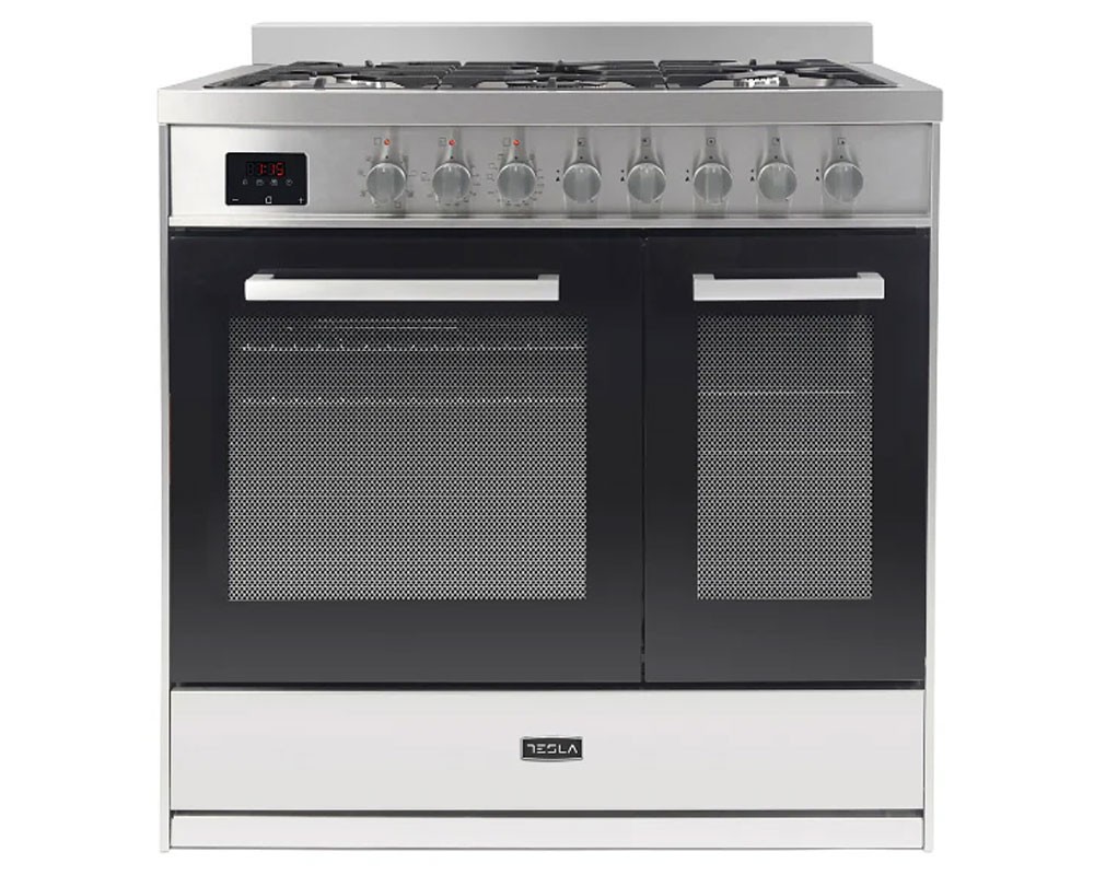 Ferre F9H50GF-BL-RETRO 90cm Gas Range Cooker With Double Turbo Fan & 5 Burner(1 Wok) Gas Hob - Black