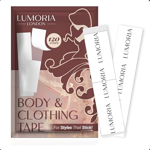 LUMORIA Double Sided Body Tape for Clothes (120 Pack) - Tranparent Fashion Tape for Women, Strong Hem Support Extra Adhesive