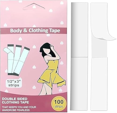 Linda’s Essentials Double Sided Body and Fashion Tape (100 Pack) - Extra Adhesive Double Sided Boob Tape for Clothes & Skin, All Fabric Types, Perfect for Dresses, Body & Bra Support