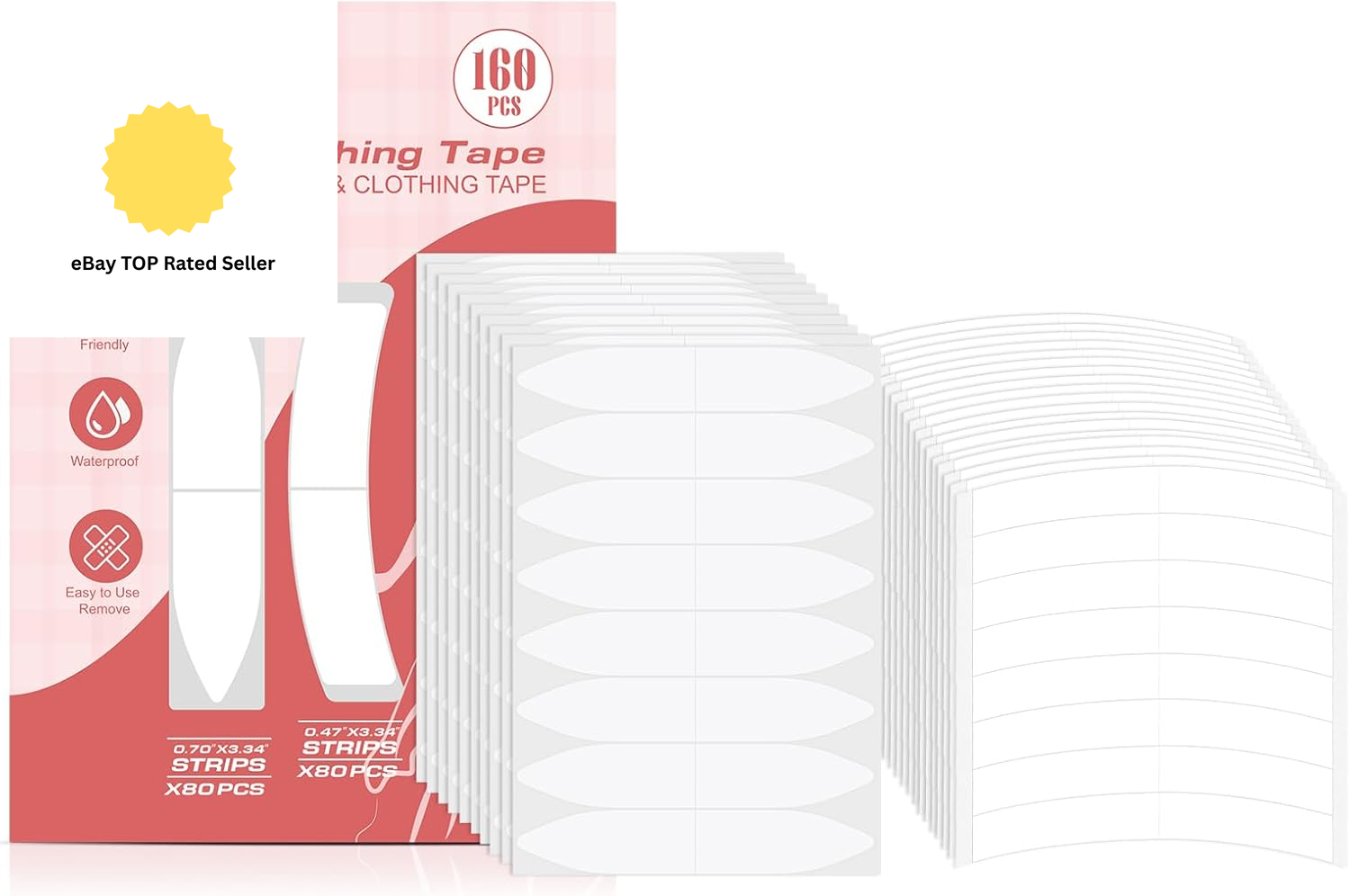 160 Pack Fashion Tape, Double Sided Body Tape and Clothing Tape, Transparent Fa