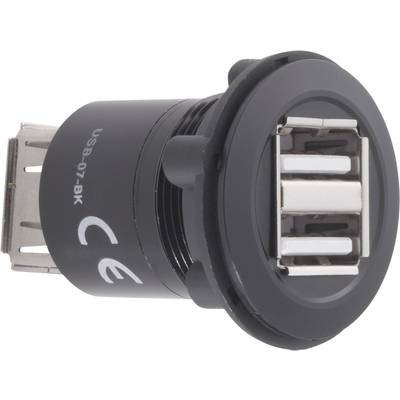 TRU COMPONENTS USB-07-BK USB-double-mounted socket 2.0 Socket, built-in, Adapter 2 x USB-socket type A to 2x USB-socket type A Content: 1 pc(s)