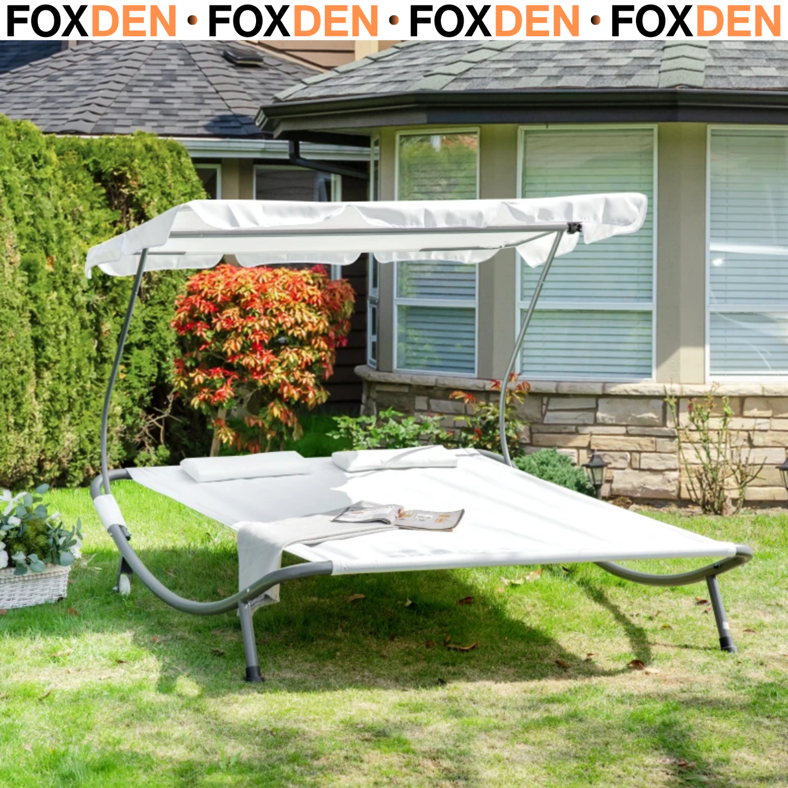 EMYRLXQW Outdoor Furniture-Outdoor Seating -Double Sun Lounger with Canopy Textilene Black and Cream