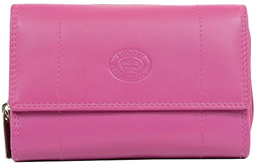 Ladies Soft Real Nappa Leather Zip-around Purse with Front Flap and Double Credit Card Swing Section (Lilac/Dark Brown/Dark Red/Mid Brown) (Pink)