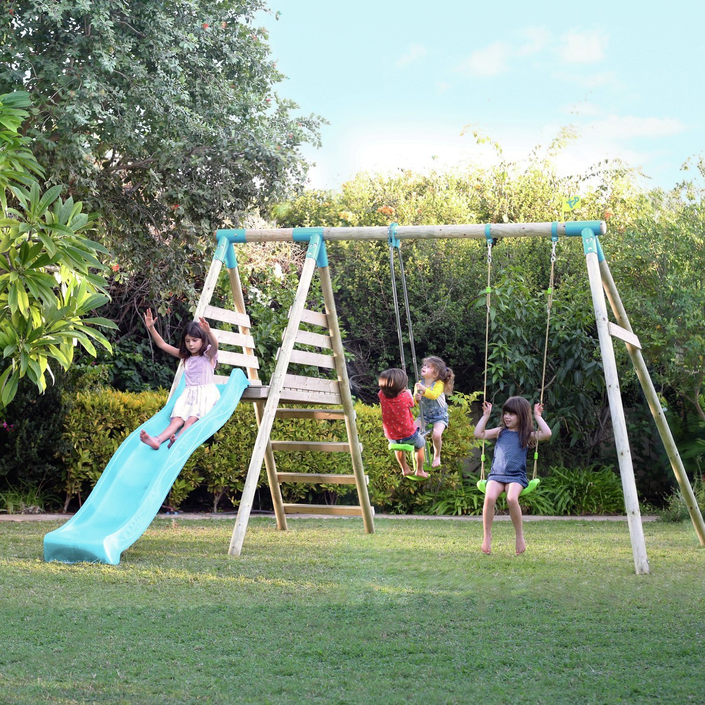 TP Alaska Wooden Kids Double Swing Set and 8ft Slide
