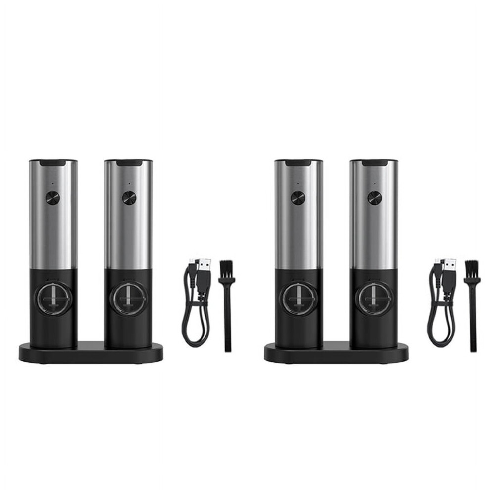 4x Rechargeable Electric Salt and Pepper Grinder Set with Double Charging Base, USB Cable, Automatic Salt Pepper Grinder