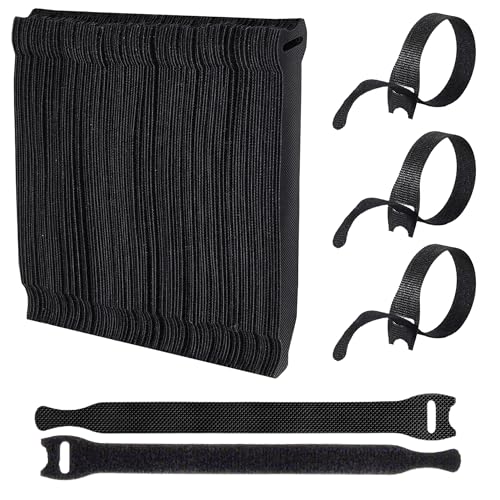 Double Dragon 50 PCS Reusable Cable Ties – 150x12mm Hook and Loop Velcro Straps – Adjustable & Releasable Cable Organizer for Headphones, Phones, HDMI, Ethernet, Power Cords, USB, and More – Black