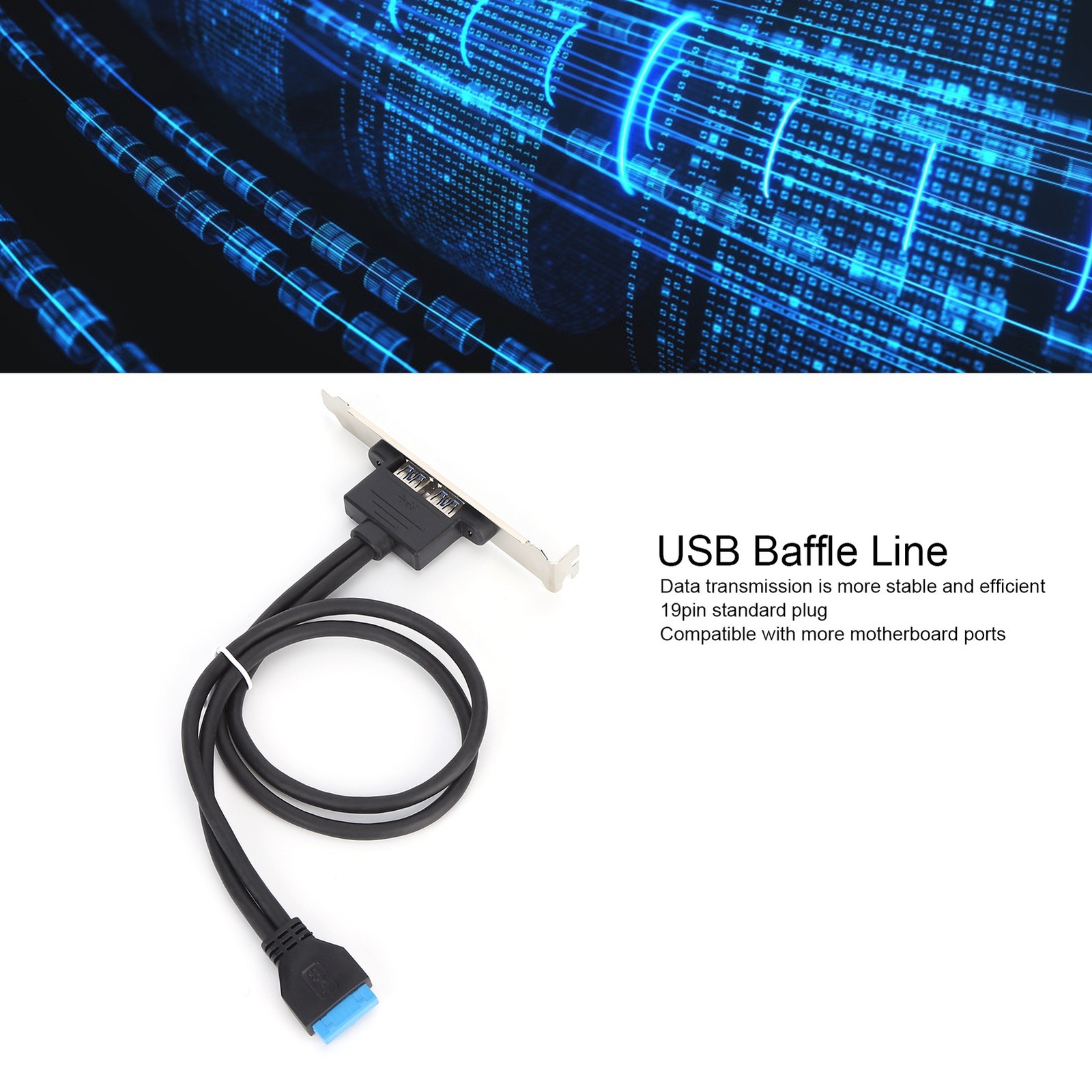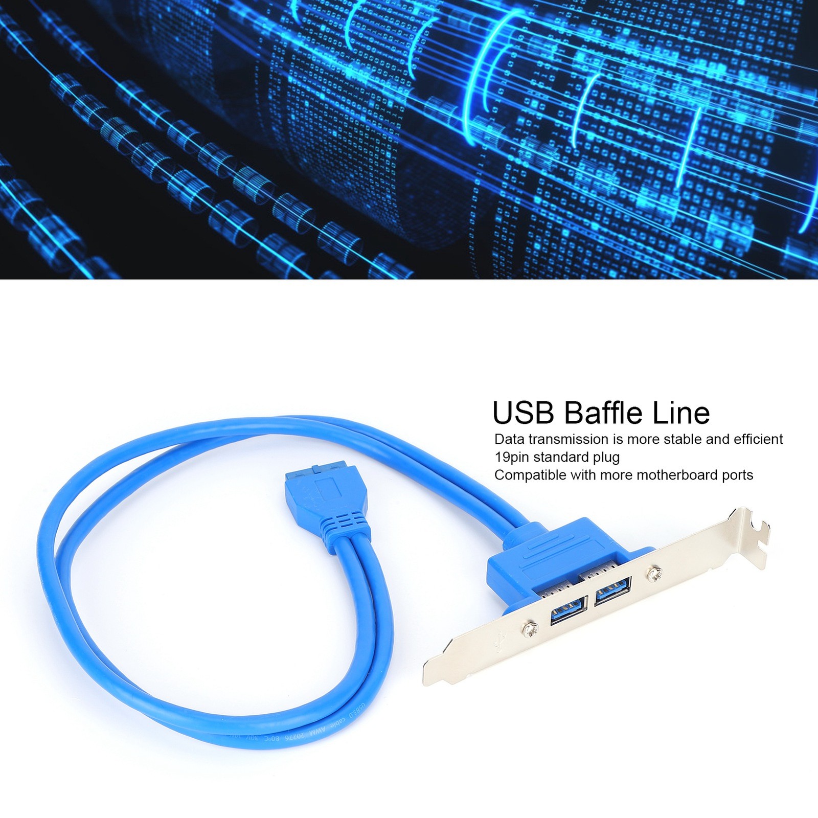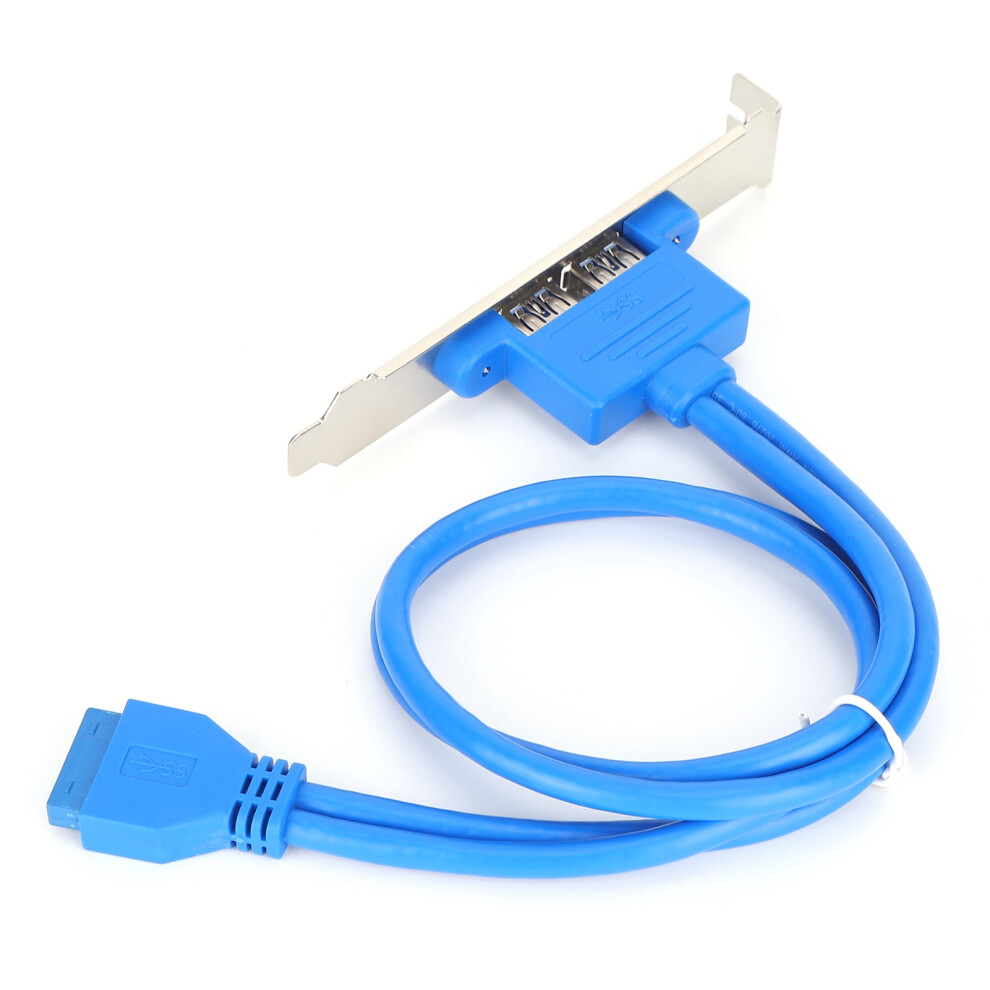 Double USB Baffle Cable Motherboard 19 Pin to Dual Port A Female Extension Rear Panel BracketBlue
