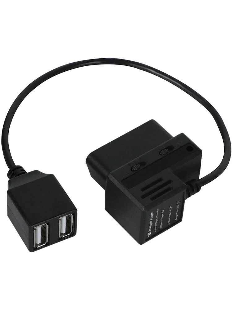 OBD 16 Pin Female to Double USB Cable OBD2 Converter OBDII Connector Power Supply Charging Cable for Auto GPS Tracker OBD Device