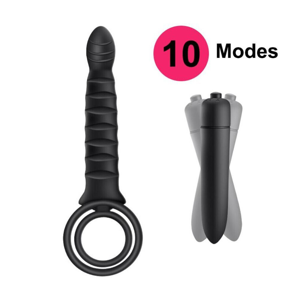 Double Dong Vibrator Anal Bead Wand Butt Plug Dildo Sex Toy Flexible Firm