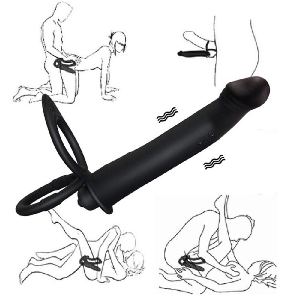 (black) Double Penetration Vibrator 10 Speeds Sex Toys Strapon Dildo Vibrator Strap On Penis Vagina Anal For Man Sex Toys For Couples