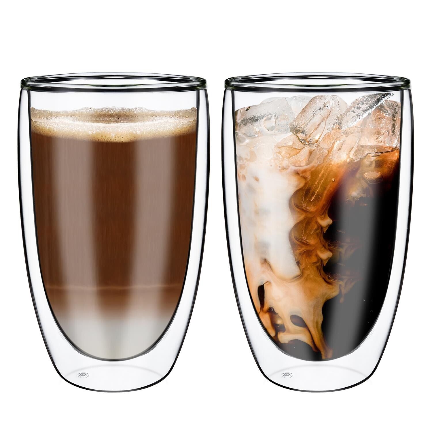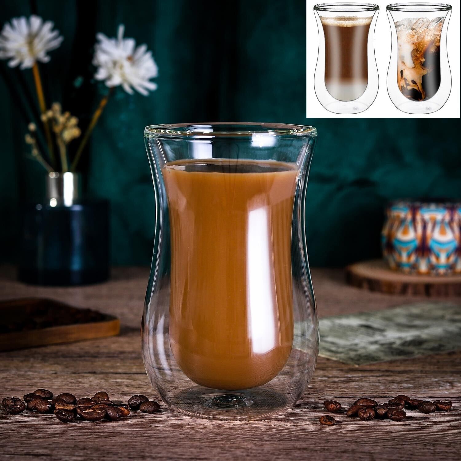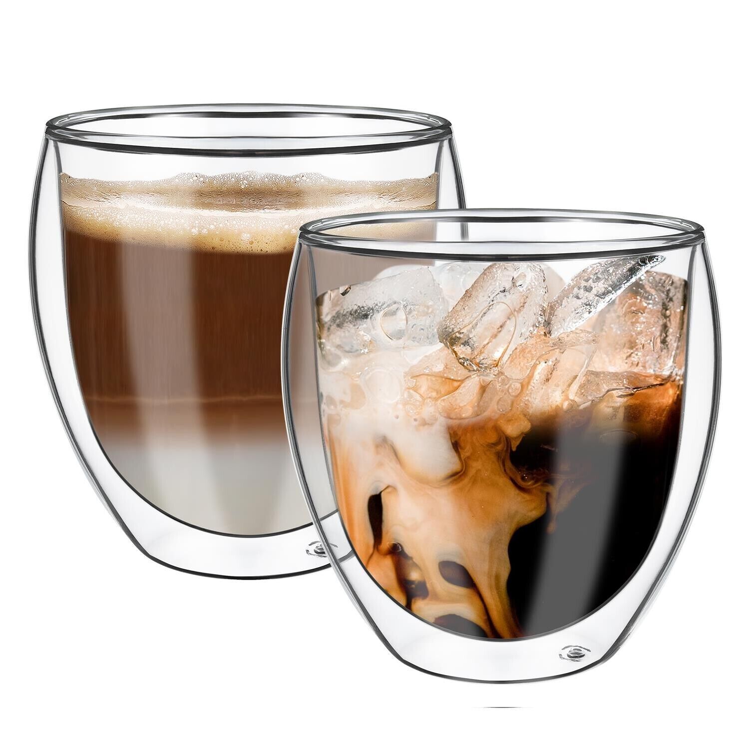 Double Walled Coffee Glasses Cups Heat Cold Resistant Casa Barware - Set of 2