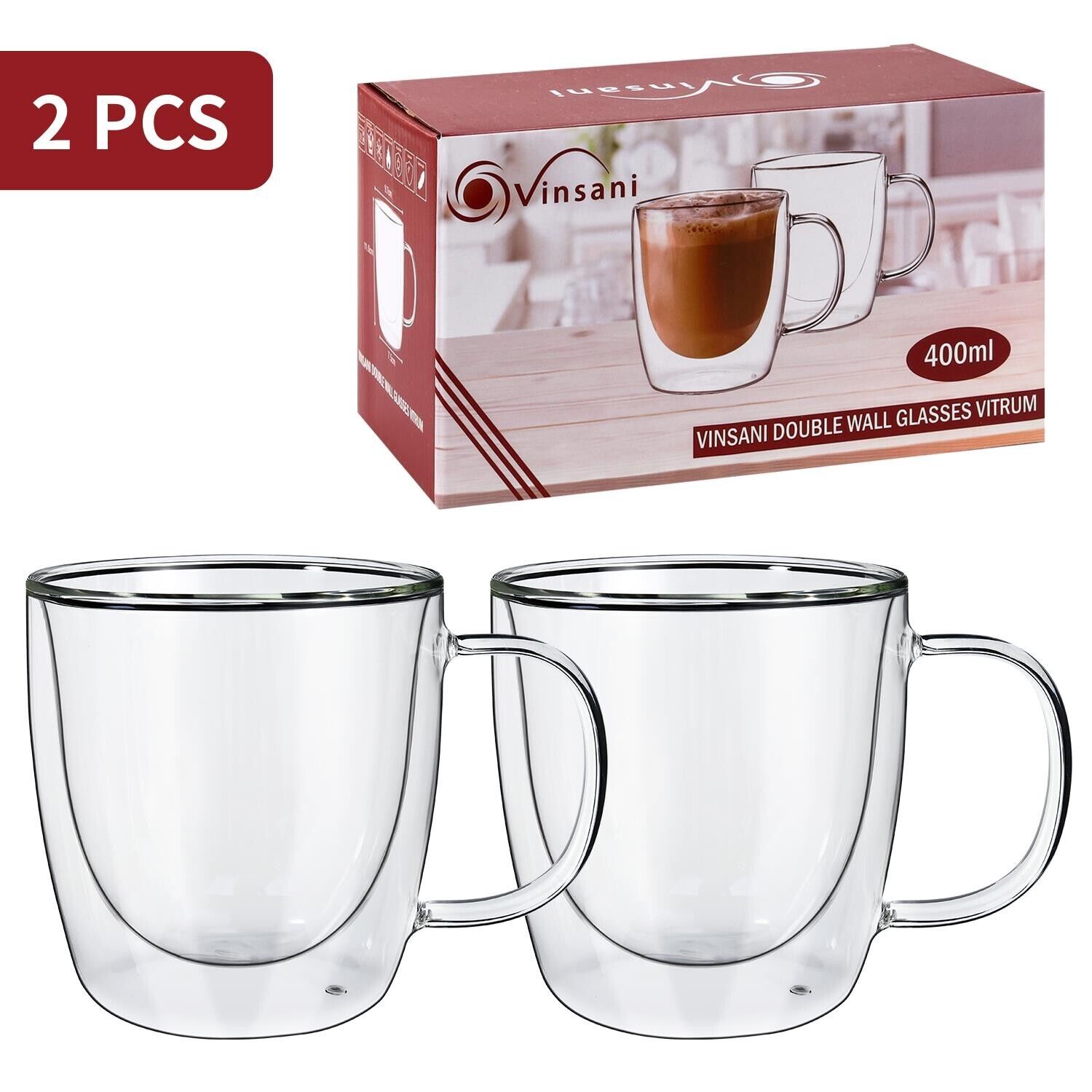 Double Walled Coffee Glasses Mugs 2X400Ml Cappuccino Latte Macchiato Glasses Cup