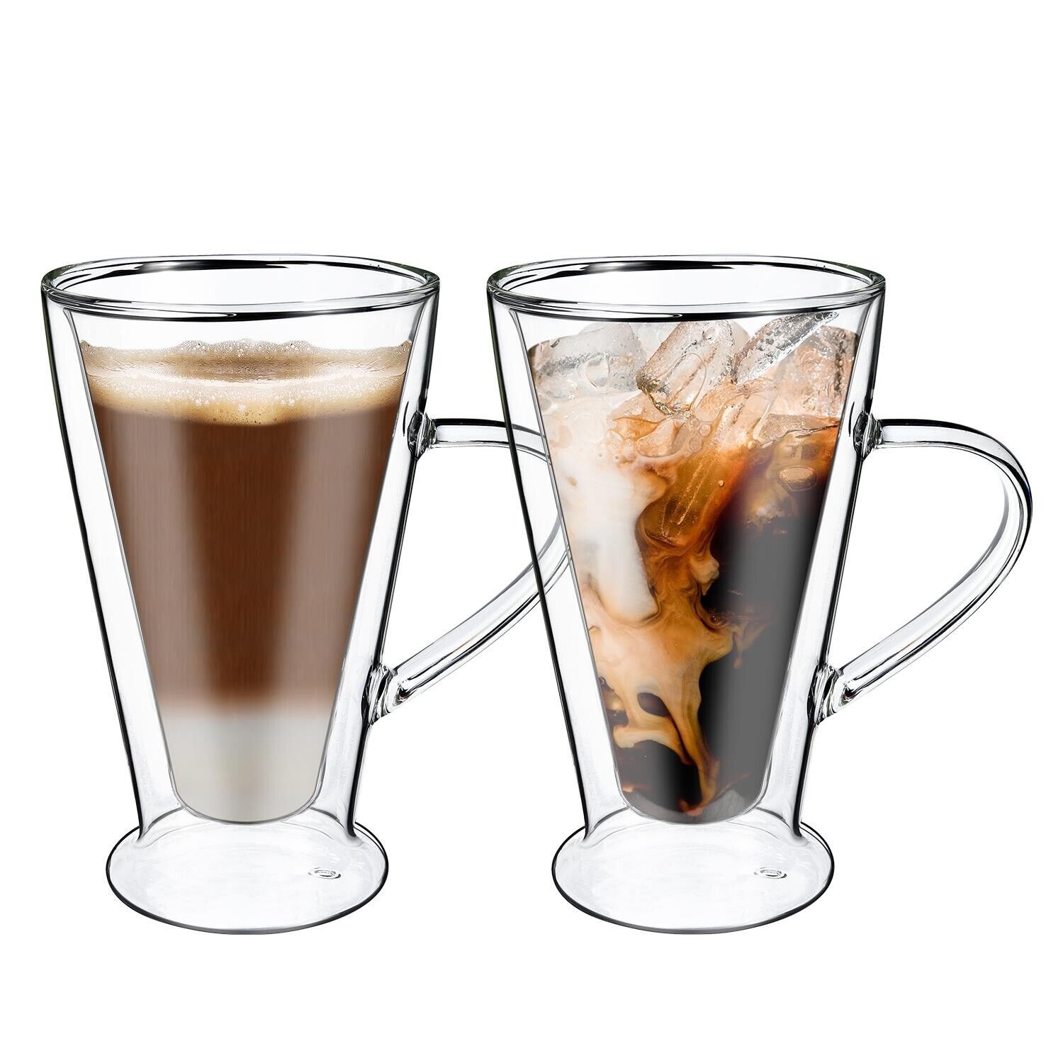 glastal 2x350ml Double Walled Coffee Glasses Mugs Cappuccino Latte Macchiato Glasses Cups with Handle Borosilicate Heat Resistant Glass Cups for Coffee Tea Milk Juice Ice Cream