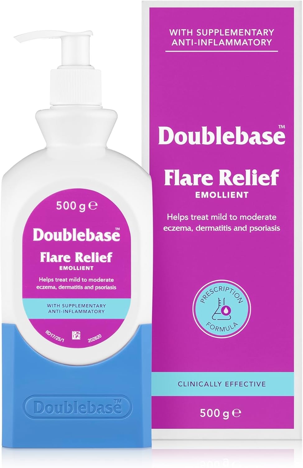 Doublebase Flare Relief Emollient for the Treatment and Relief of Dry Skin Conditions such as Eczema and Psoriasis and Dermatitis (Packaging May Vary), 500g Pump Pack