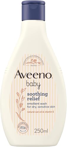 Aveeno Baby Soothing Relief Emollient Wash (1 x 250ml), Unscented, Gentle and Tear-Free Baby Wash with Natural Oat Oil & Vitamin E, Skin Feels Moisturised for 24 Hours, for Dry, Sensitive Skin