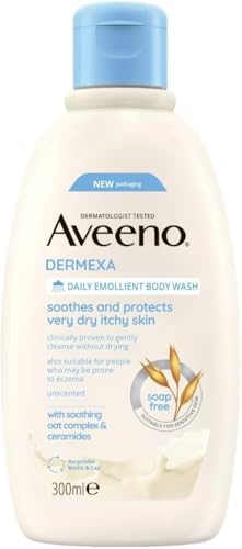 Aveeno Dermexa Daily Emollient Body Wash, Gently cleanses and Soothes, For Very Dry Itchy Also Eczema Prone Skin, 300 ml(Packaging may vary)