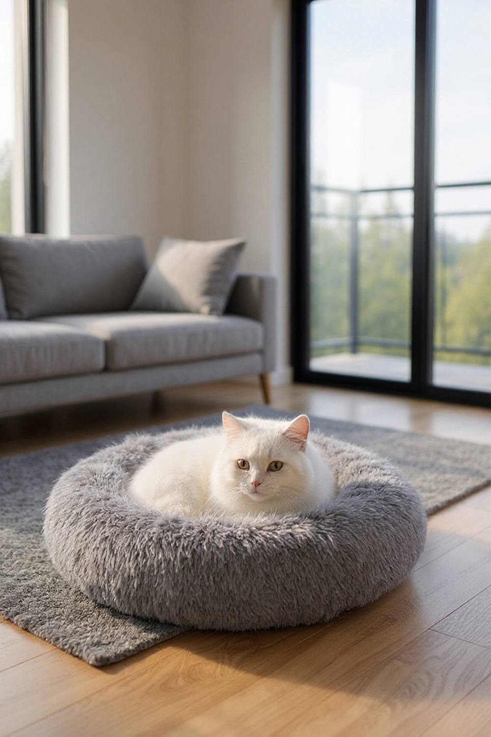 50x50cm Calming Shag Doughnut Cat and Dog Bed