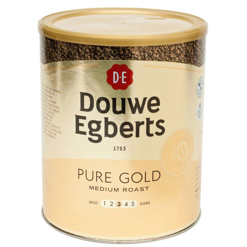1 x 750g Douwe Egberts Pure Gold Instant Coffee Tin Medium Roast 470 Servings