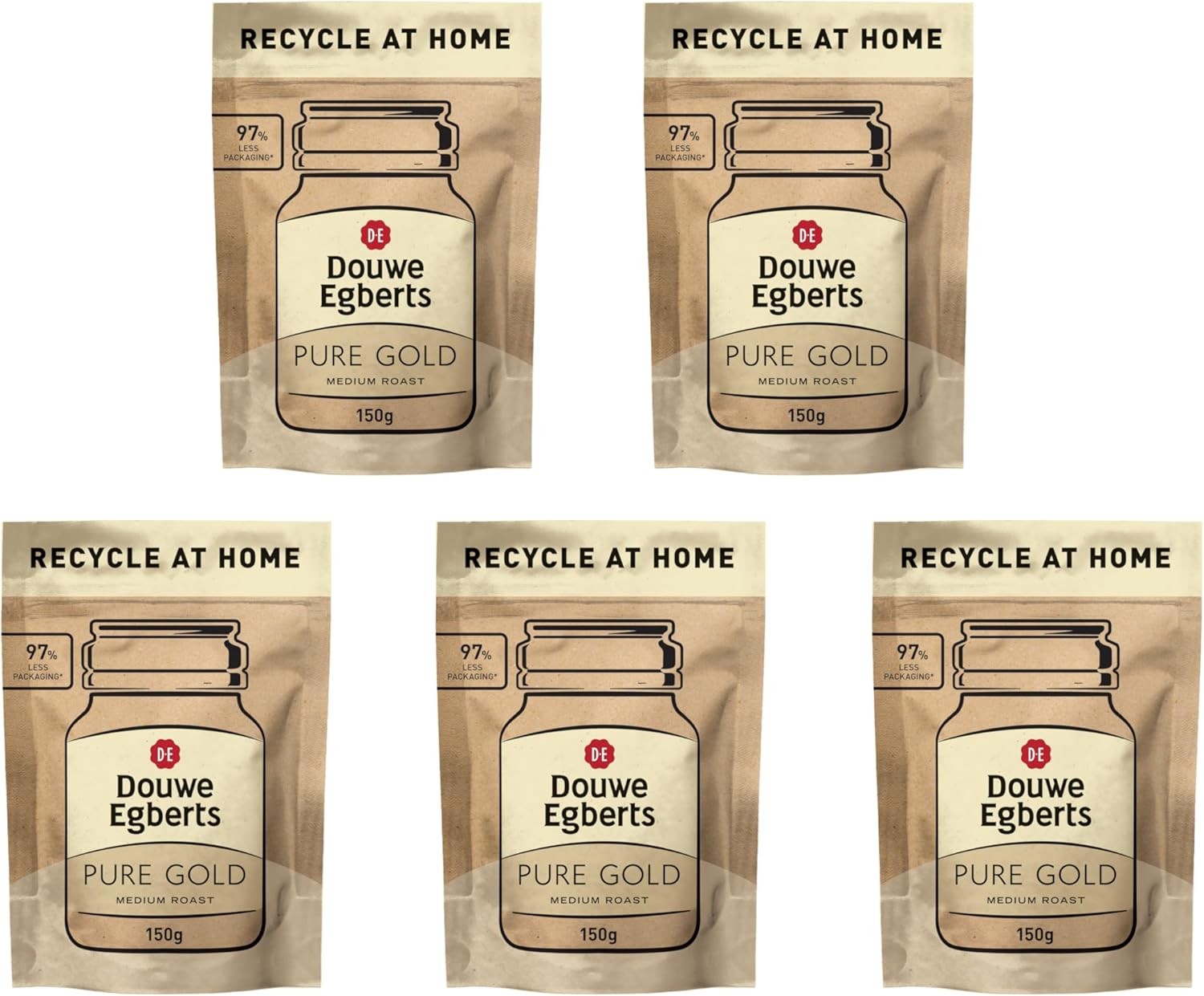 Douwe Egberts Pure Gold Instant Coffee Refill 150G (Pack of 5, Total 750G)