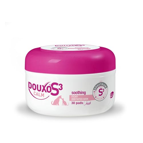 DOUXO S3 CALM Pads, Dog Itchy Skin Relief, Dry Skin Dog Solution, Pet Wipes for Cats, For Irritated Sensitive Skin, Dog Feet Wipes, Hypoallergenic Dog & Cat Wipes, Soothes & Hydrates, 30 Pads