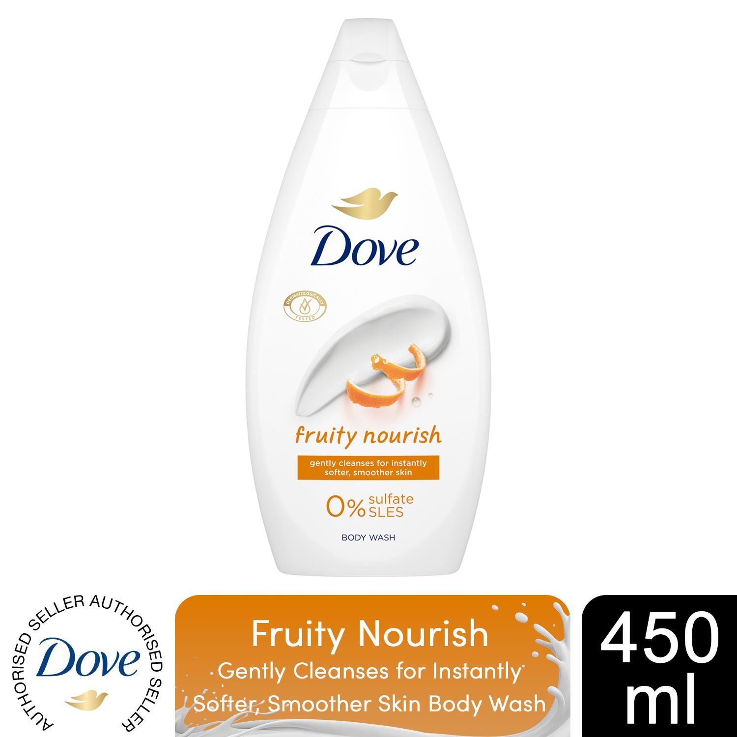 Dove Fruity Nourish Body Wash 0% Sulfate SLES for Softer & Smoother Skin, 450ml
