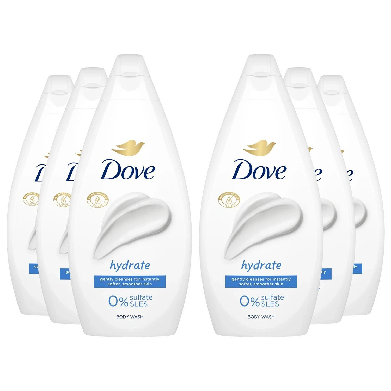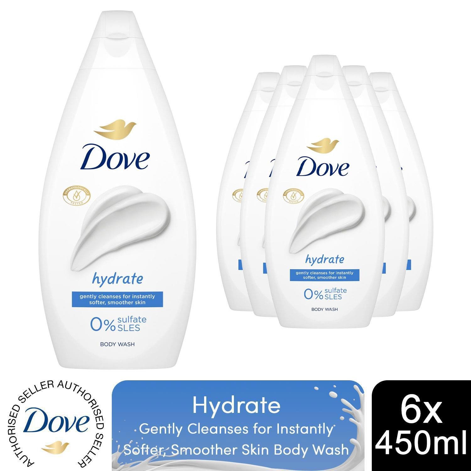 Dove Hydrate Body Wash 0% Sulfate SLES for Softer & Smoother Skin 450ml, 6 Pack