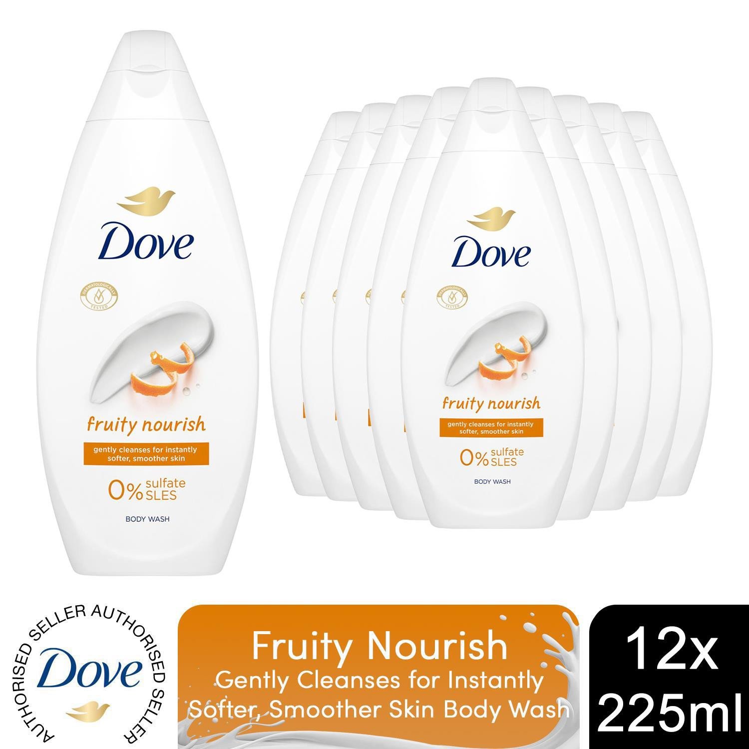 Dove Fruity Nourish Body Wash 0% Sulfate SLES for Soft & Smoother Skin, 12x225ml