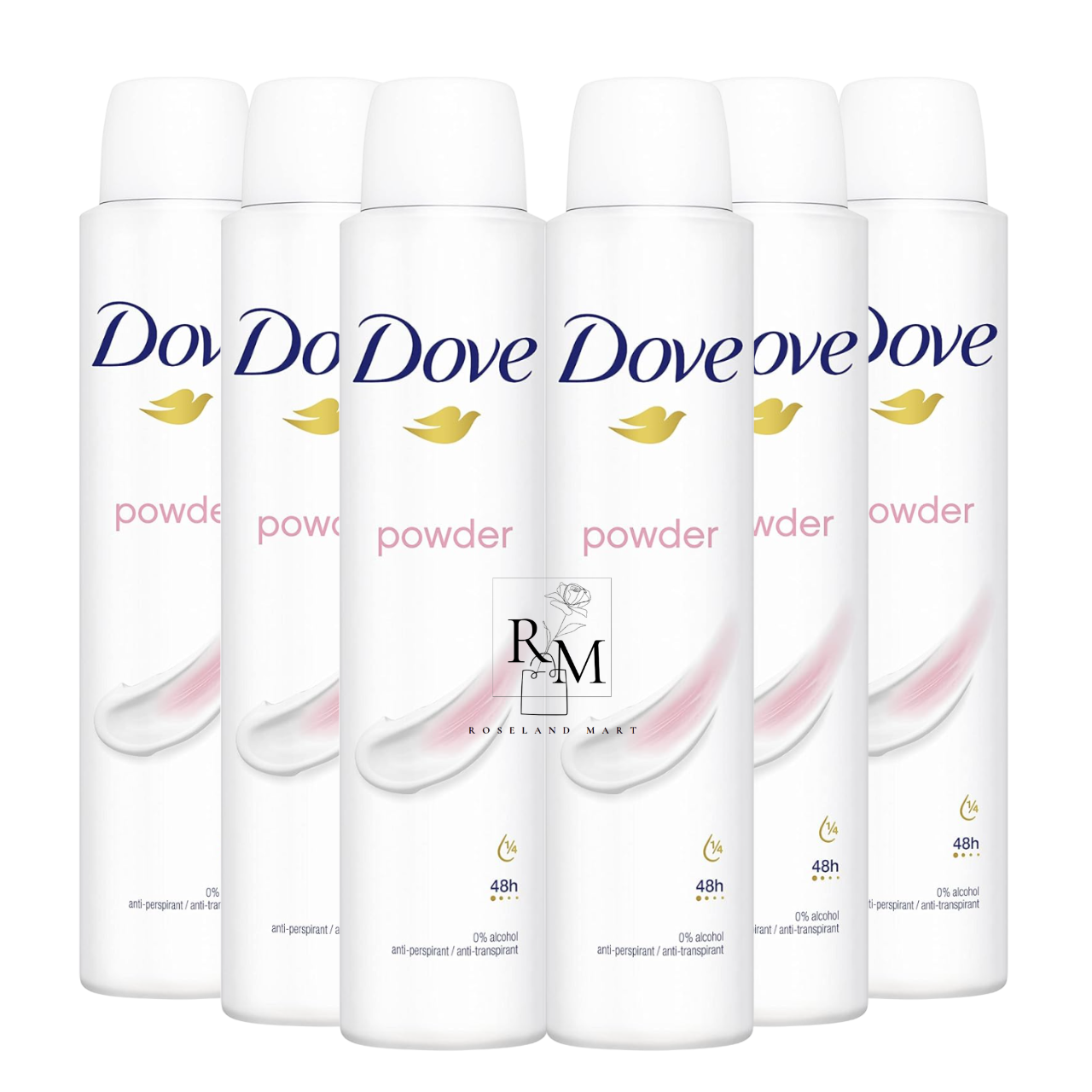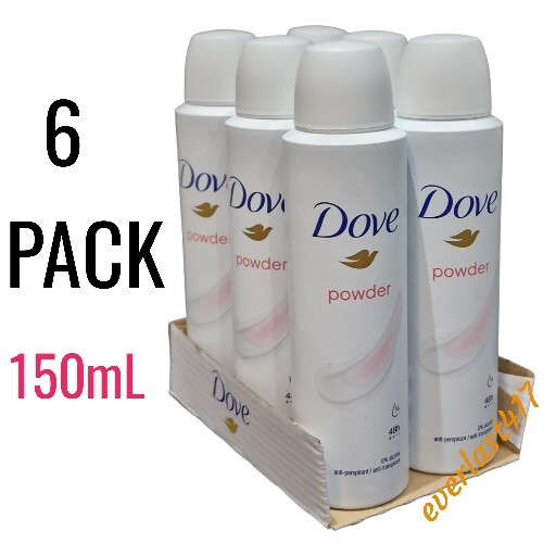 NEW 6 x Dove Powder Deodorant Anti-Perspirant 150ml Spray 0% ALCOHOL Free P&P UK