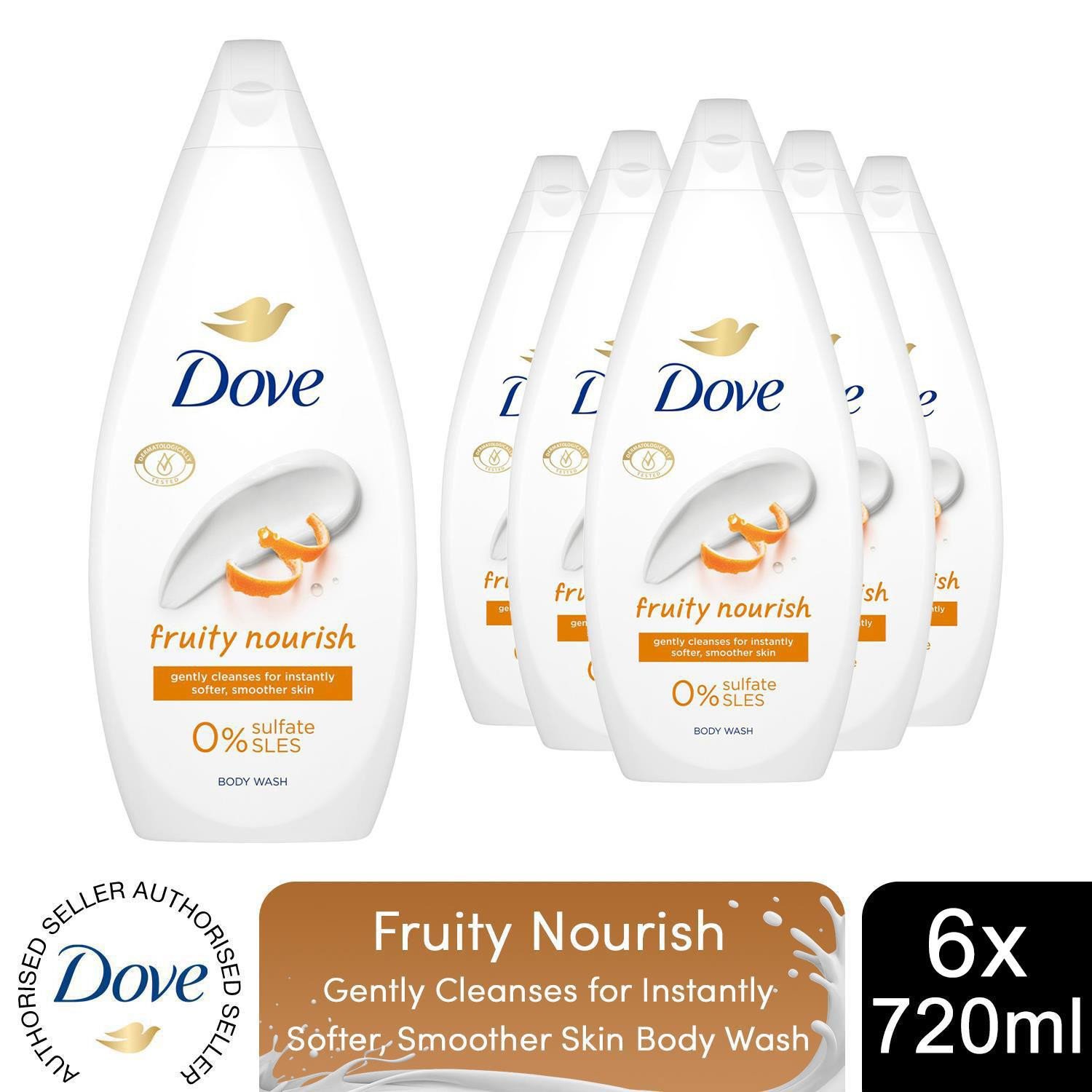 Dove Fruity Nourish Body Wash 0% Sulfate SLES for Soft & Smooth Skin 720ml, 6pk