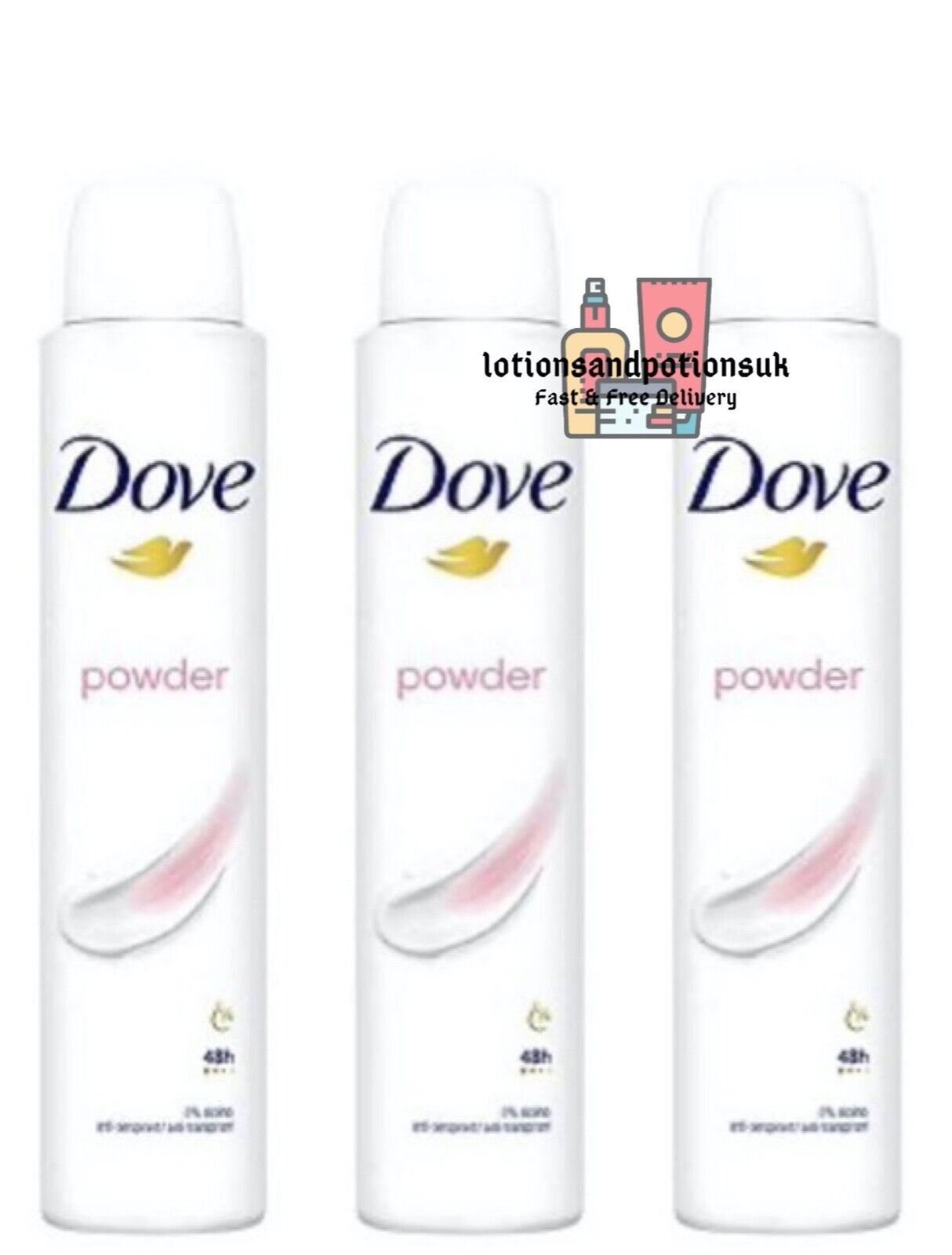 3 X Dove POWDER Anti Perspirant Deodorant 200ml 48Hr 0% Alcohol