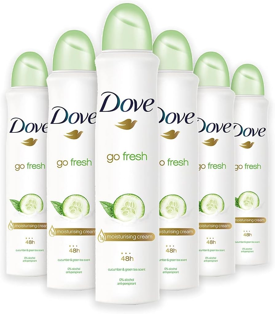 6 x 150ml Dove Cucumber & Green Tea Anti-Perspirant Deodorant Spray 0% Alcohol