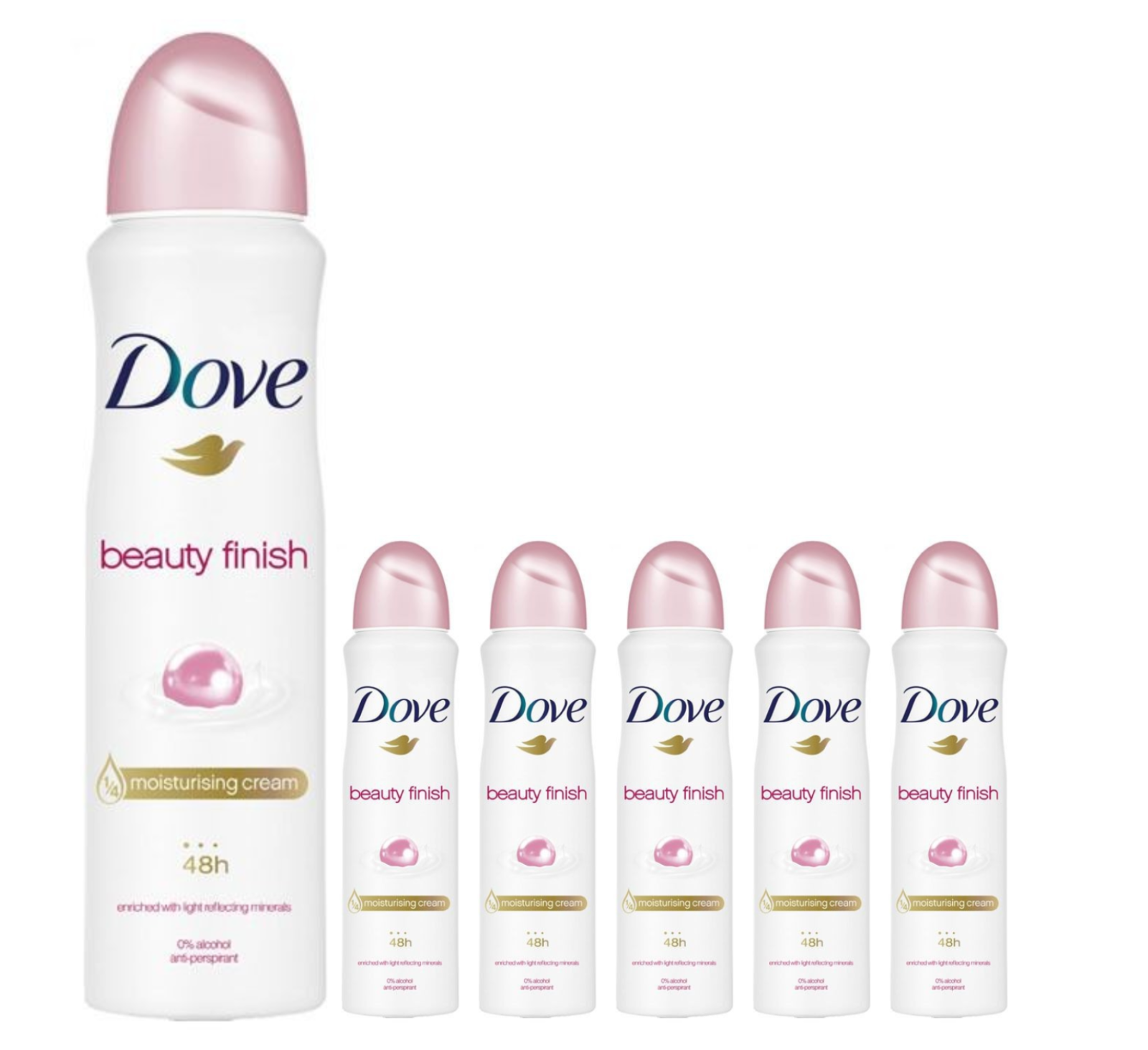 6 x 150ml Dove Beauty Finish Anti-Perspirant Deodorant Body Spray 0% Alcohol