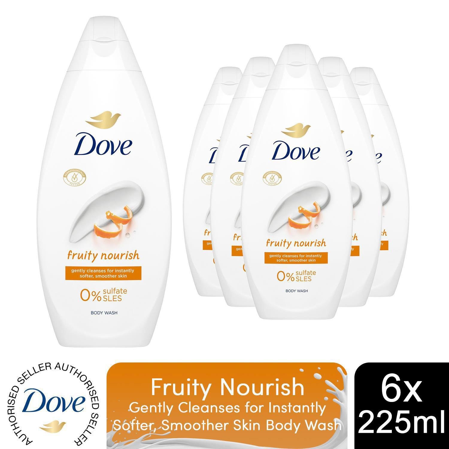 Dove Fruity Nourish Body Wash 0% Sulfate SLES for Soft & Smoother Skin, 6x225ml