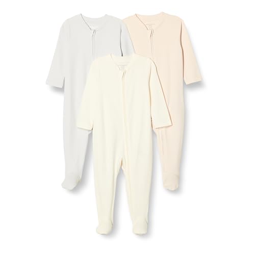 Amazon Essentials Unisex Babies' Footed Sleepsuit, Pack of 3, Dove Grey/Ivory/Pale Pink, 0-3 Months