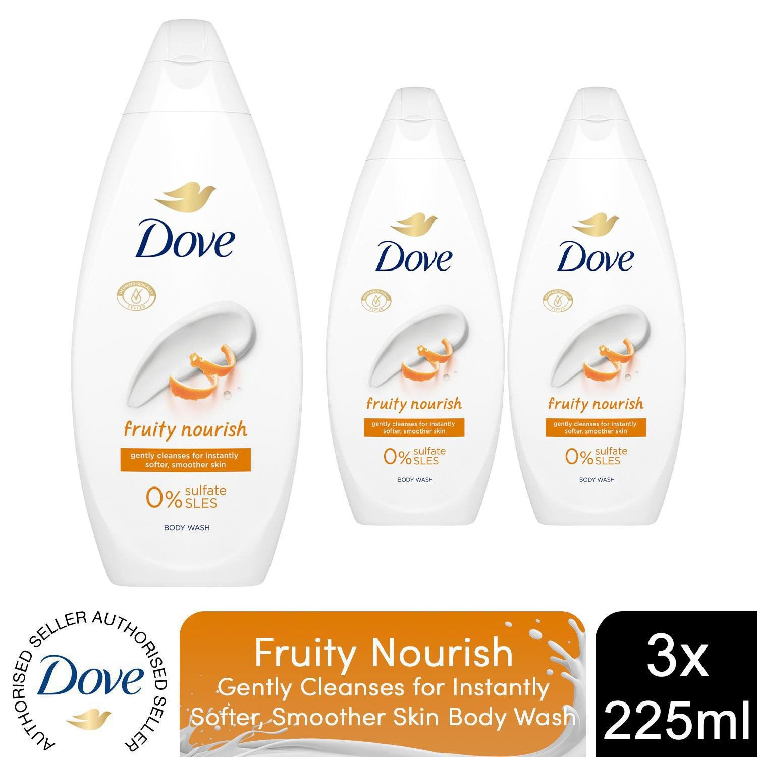 Dove Fruity Nourish Body Wash 0% Sulfate SLES for Soft & Smoother Skin, 3x225ml