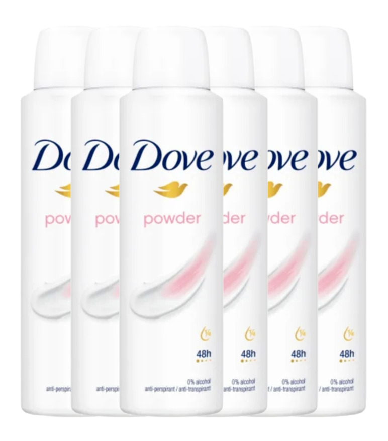 Dove Powder Deodorant Anti-Perspirant Spray 0% Alcohol 150ml 6 Pack