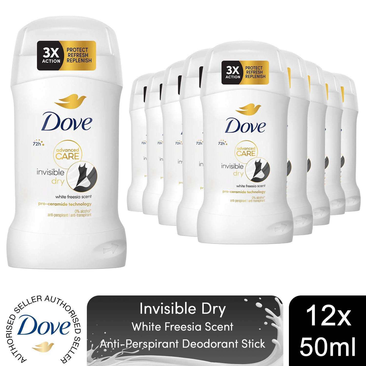 Dove Women Invisible Dry Anti-Perspirant Deo Stick w/ 72H Protection 50ml, 12 Pk