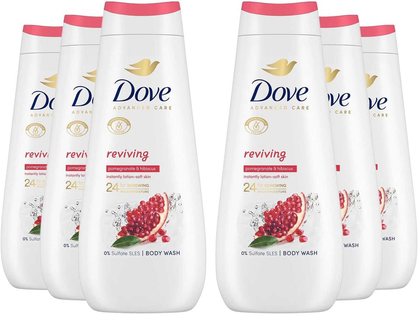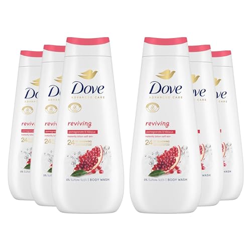 Dove Advanced Care Reviving Body Wash Body Cleanser shower gel with pomegranate & hibiscus extracts for instantly lotion-soft skin 6x 400 ml