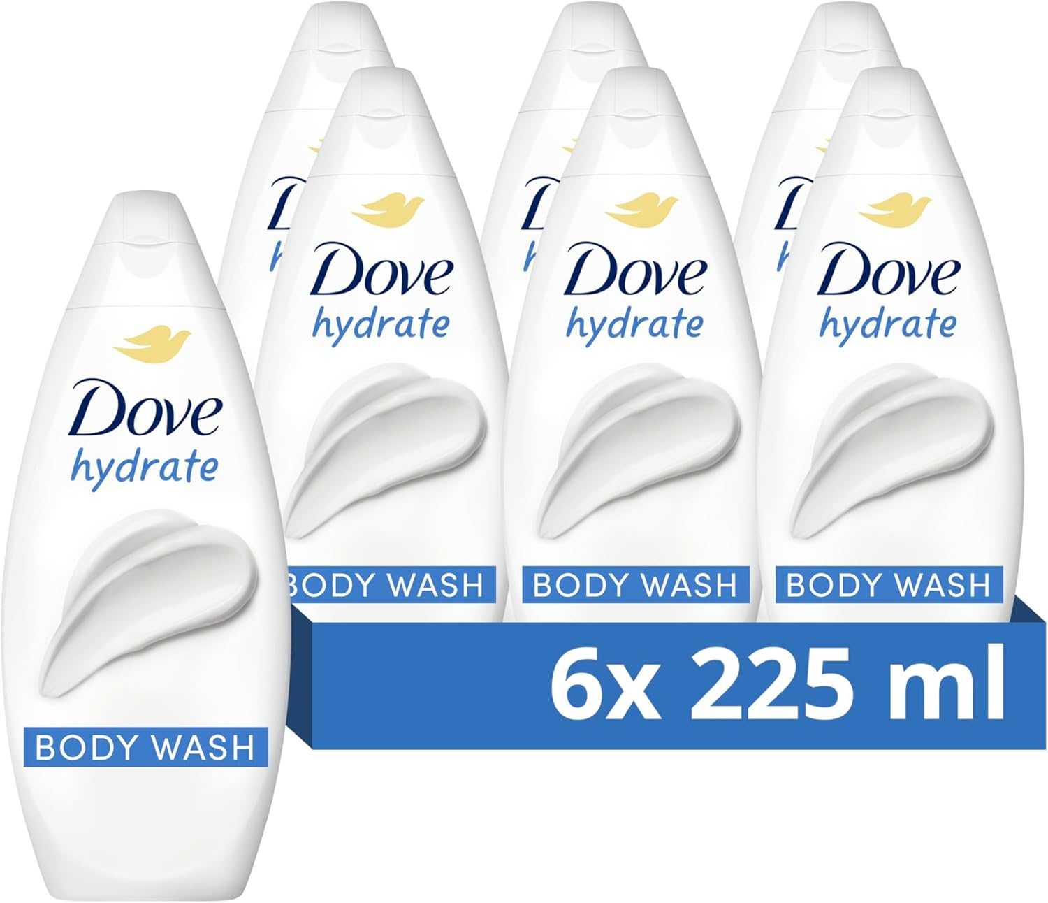 Dove Hydrate Body Wash Body Cleanser shower gel with plant-based moisturisers for softer, smoother skin after one shower 6x 225 ml