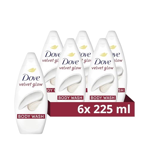 Dove Velvet Glow Body Wash Body Cleanser shower gel with plant-based moisturisers for softer, smoother skin after one shower 6x 225 ml