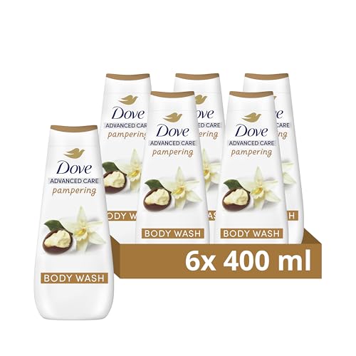 Dove Advanced Care Pampering Shea Butter & Vanilla Scent Body Wash Shower Gel for instantly lotion-soft skin 400 ml, Pack of 6